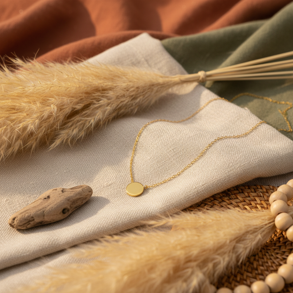 The smooth, polished surface of the disc pendant is perfect for personalizing with initials, a special date, or a meaningful symbol, making this necklace an ideal gift or treasured keepsake. The dainty chain sits beautifully at the collarbone, perfect for wearing solo or layering with other necklaces for a curated look.