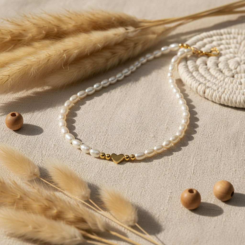 This elegant and romantic necklace combines the timeless beauty of pearls with a symbol of love. Perfect for expressing affection or adding classic sophistication to any outfit, making it an ideal gift for anniversaries, Valentine's Day, or any special celebration.