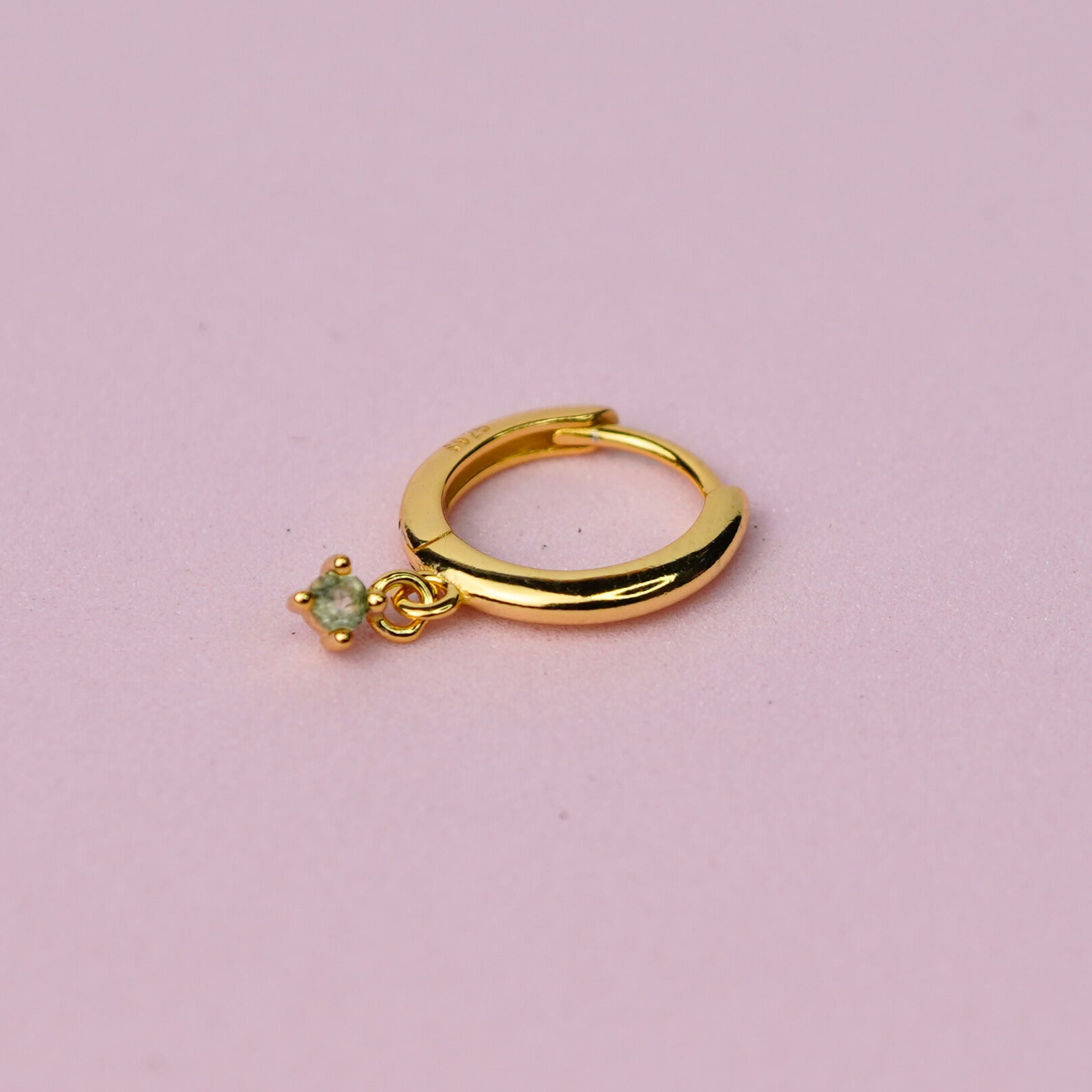 Huggie Hoop Earrings with Moss Agate Charm - 14K Gold Plated Sterling Silver