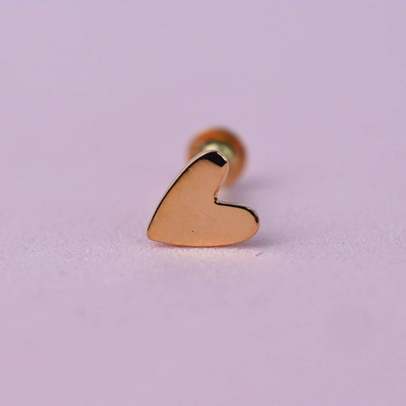 Heart Stud Flat Back Earring - 14K Solid Gold