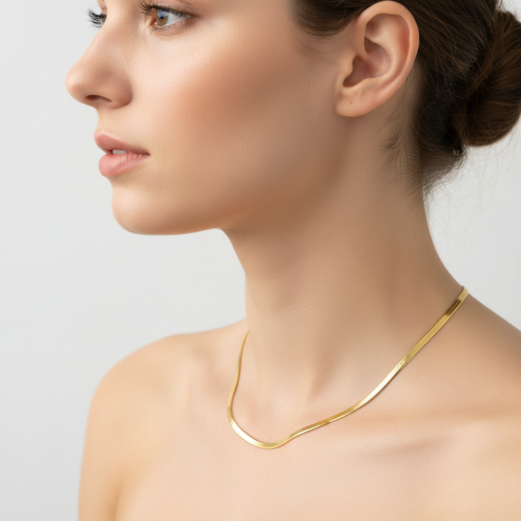 Style: Slim flat herringbone/snake chain